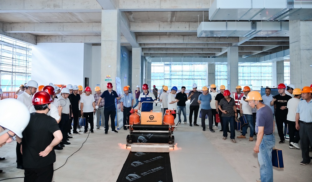 浙江東方雨虹現(xiàn)場(chǎng)分享建筑防水、建筑涂料、砂漿粉料、土工防滲、樓板隔聲、混凝土防腐、金屬涂裝、非織造布、運(yùn)動(dòng)地坪、雨虹管業(yè)等 “一超九強(qiáng)”產(chǎn)品、智能型卷材攤鋪車坦途-100的優(yōu)異性能和應(yīng)用場(chǎng)景,并展示改性瀝青涂料熱熔施工的標(biāo)準(zhǔn)化操作。