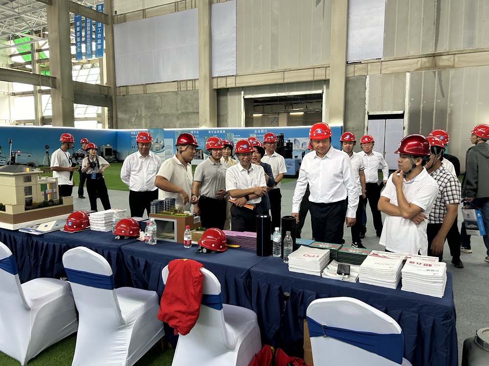 住房和城鄉(xiāng)建設(shè)部建筑市場監(jiān)管司副司長廖玉平等近距離了解東方雨虹智能型卷材攤鋪車的現(xiàn)場實(shí)操,并對(duì)其在人機(jī)協(xié)作、提高工效等方面的實(shí)用性給予高度認(rèn)可。