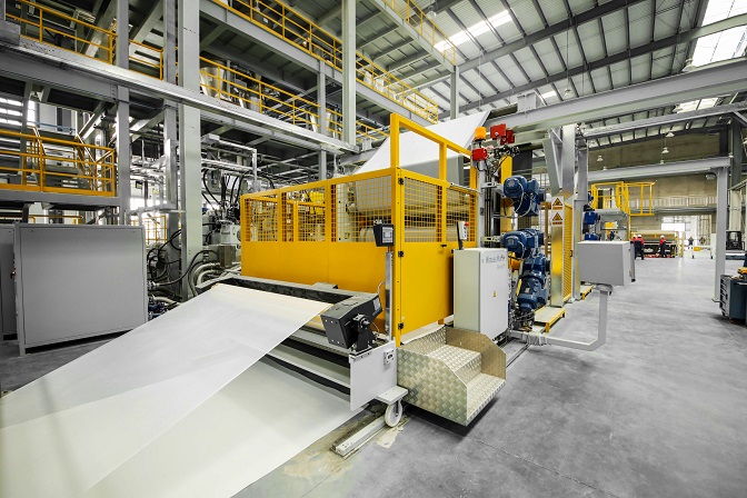東方雨虹TPO生產(chǎn)線引進(jìn)自國(guó)際知名化工機(jī)械設(shè)備制造商克勞斯瑪菲貝爾斯托夫公司,工藝先進(jìn)、精準(zhǔn)連續(xù)、均勻穩(wěn)定、綠色節(jié)能、高效安全。