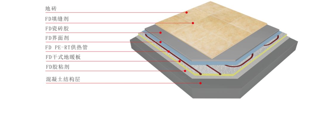 孚達(dá)高強度干式地暖模塊壓縮強度達(dá)到1200kPa以上,整體系統(tǒng)省掉12mm的水泥承壓板,從而最大程度的節(jié)約構(gòu)造層厚度,是新一代干式地暖系統(tǒng)。