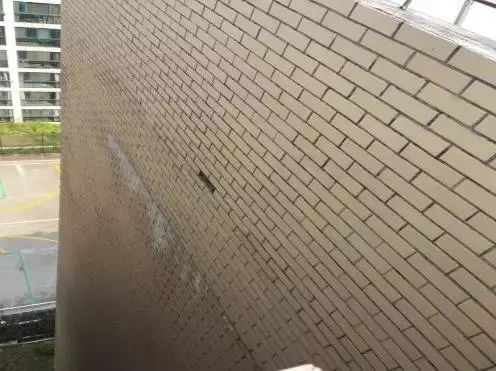 女兒墻與屋面結合處外墻面通常會出現(xiàn)一圈較大裂縫,雨水通過外墻面裂縫進入墻體而滲入室內。