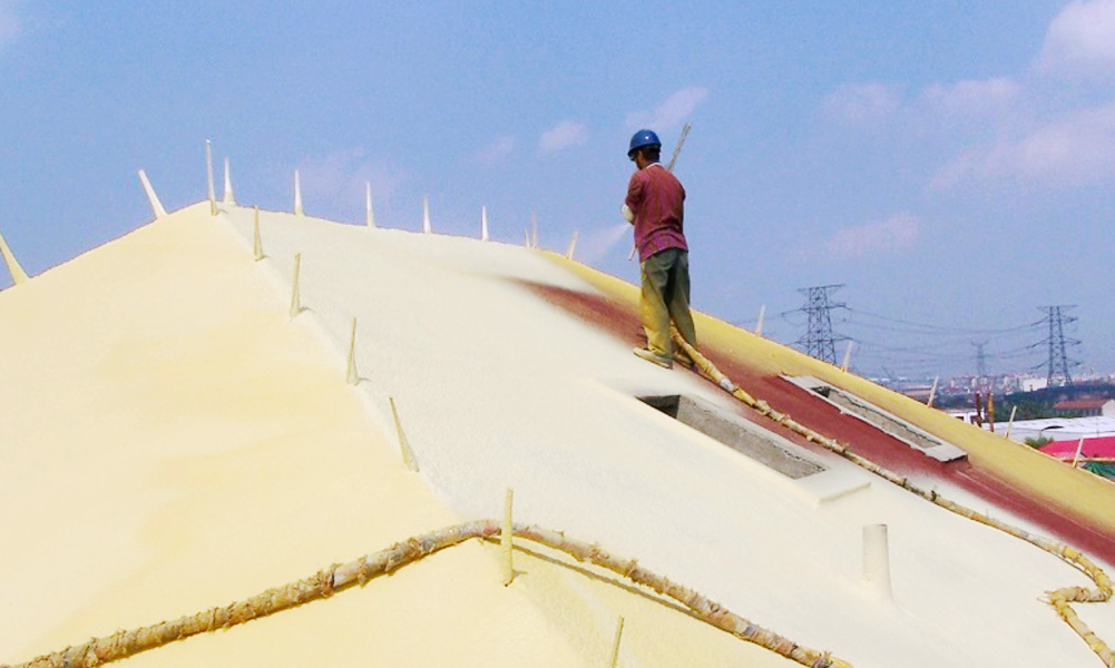 越大屋面保溫防水一體化系統(tǒng),由噴涂硬泡聚氨酯保溫防水一體化材料與保護面層構(gòu)成。通過現(xiàn)場噴涂工藝,在屋面形成連續(xù)、無接縫的殼體,有效消除冷熱橋效應(yīng),實現(xiàn)保溫防水一體化功能。