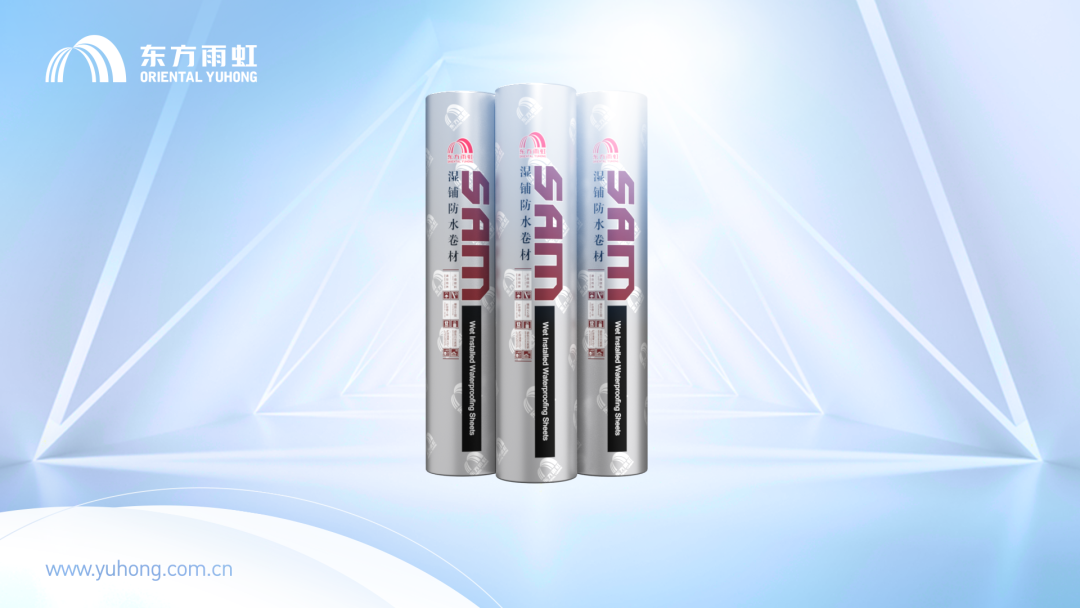眾所周知,采用冷粘法施工的濕鋪卷材是一種低碳節(jié)能且環(huán)境友好型的防水材料。該卷材對基層要求相對寬容,不僅可以在潮濕基面上施工,更能夠有效提高施工效率,故廣泛應(yīng)用于各類建筑防水工程。但常規(guī)濕鋪膜基卷材往往存在“易磕破、易撕裂、易翹邊空鼓”等問題,為此,東方雨虹研發(fā)團隊結(jié)合豐富的施工實踐與探索經(jīng)驗,成功研發(fā)SAM-924纖維增強型高分子膜基自粘瀝青防水卷材。