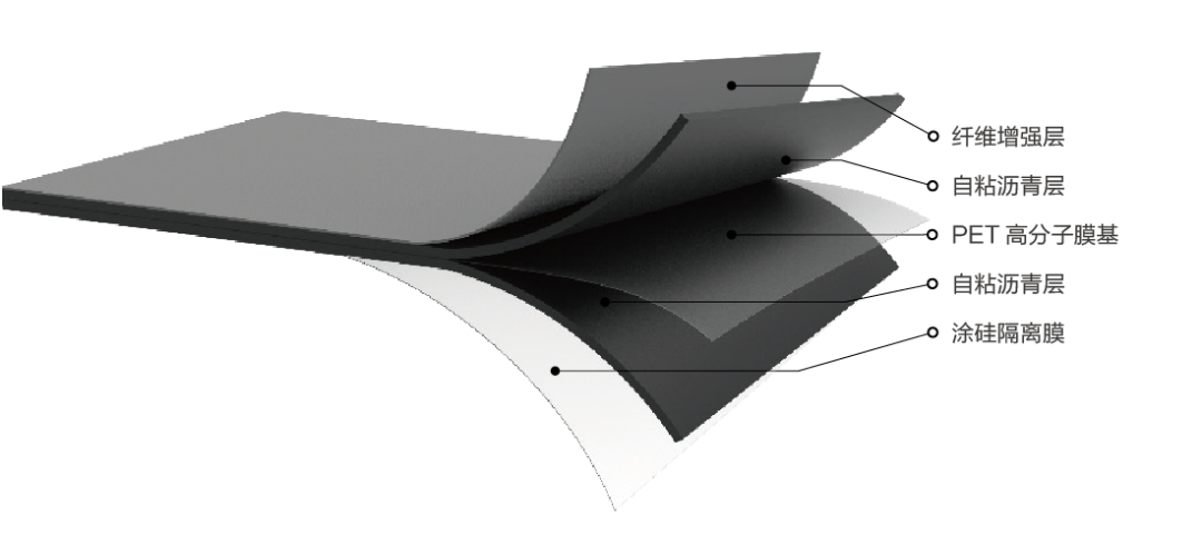 纖維增強層比表面積大,表面能涂刷多種柔性防水涂料(如丙烯酸、聚氨酯、瀝青涂料等),緊密鑲嵌復(fù)合效果好。