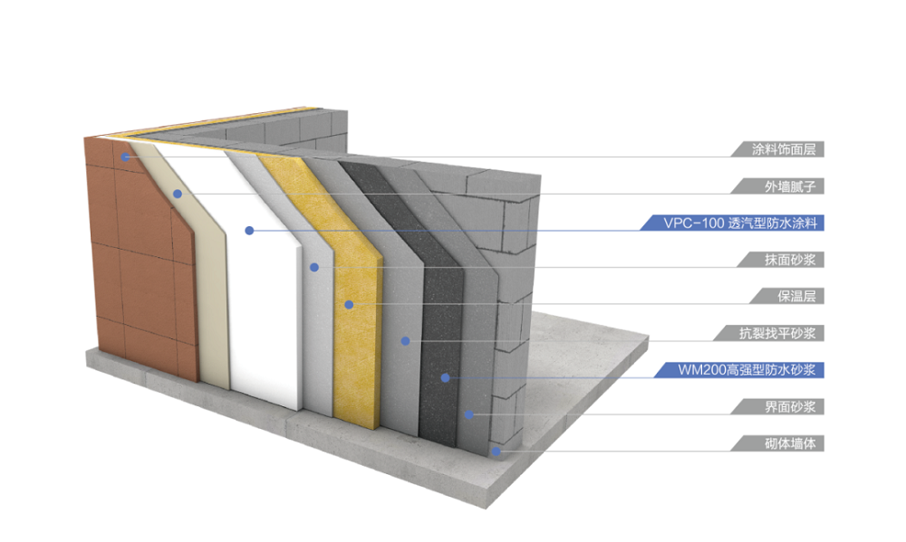 VPC-100透汽型柔性防水涂料防水透汽,國內(nèi)首款滿足新規(guī),系統(tǒng)完善專為外墻,持久守護